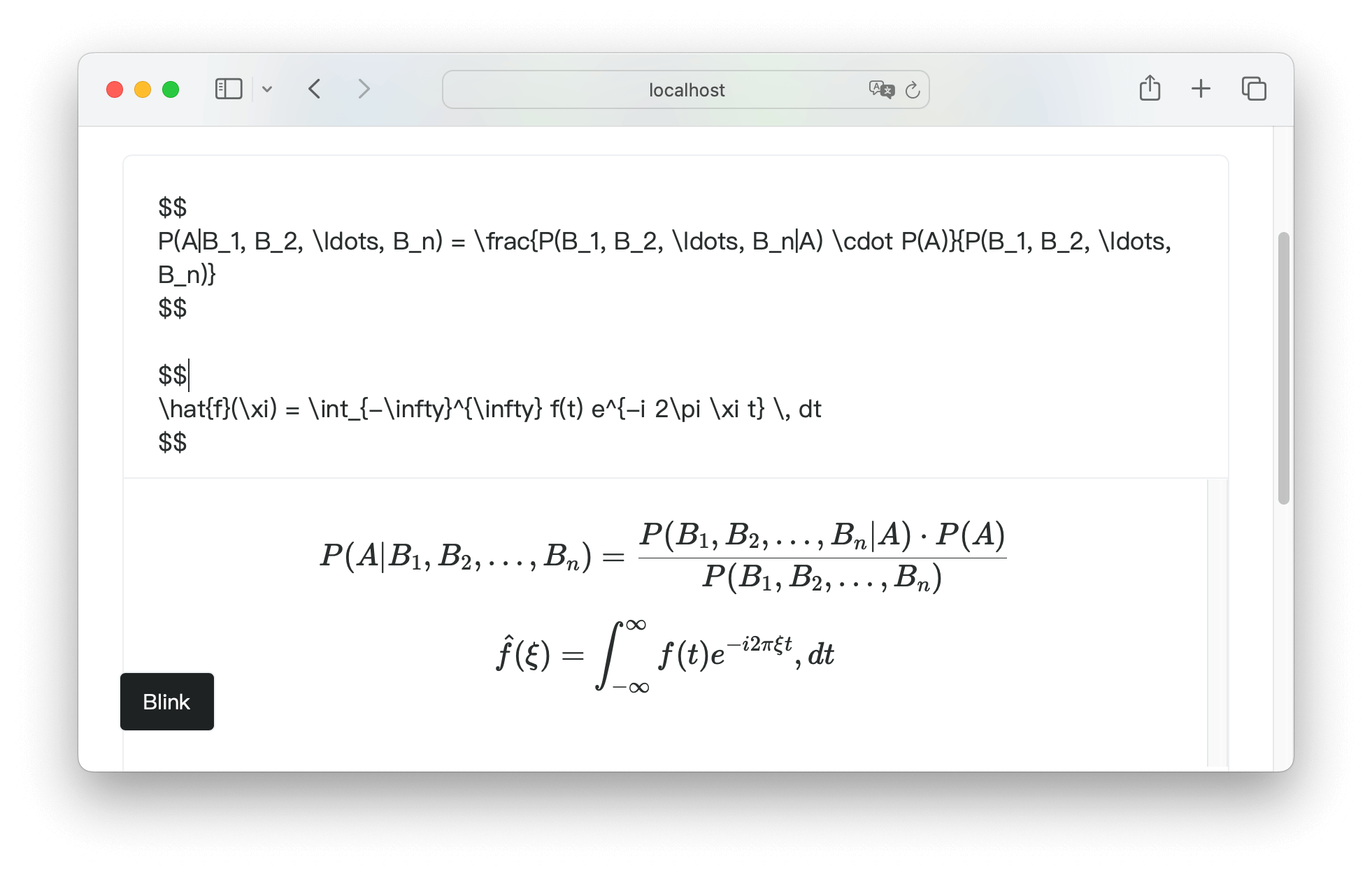 For academic websites, LaTeX support is essential. You can use Katex, a widely-used LaTeX syntax parser in the frontend, to implement this functionality. To maintain simplicity, Artalk does not natively include LaTeX syntax parsing capabilities. However, you can manually incorporate Katex and the Artalk Katex plugin into your page to enable LaTeX syntax support in the comment system.